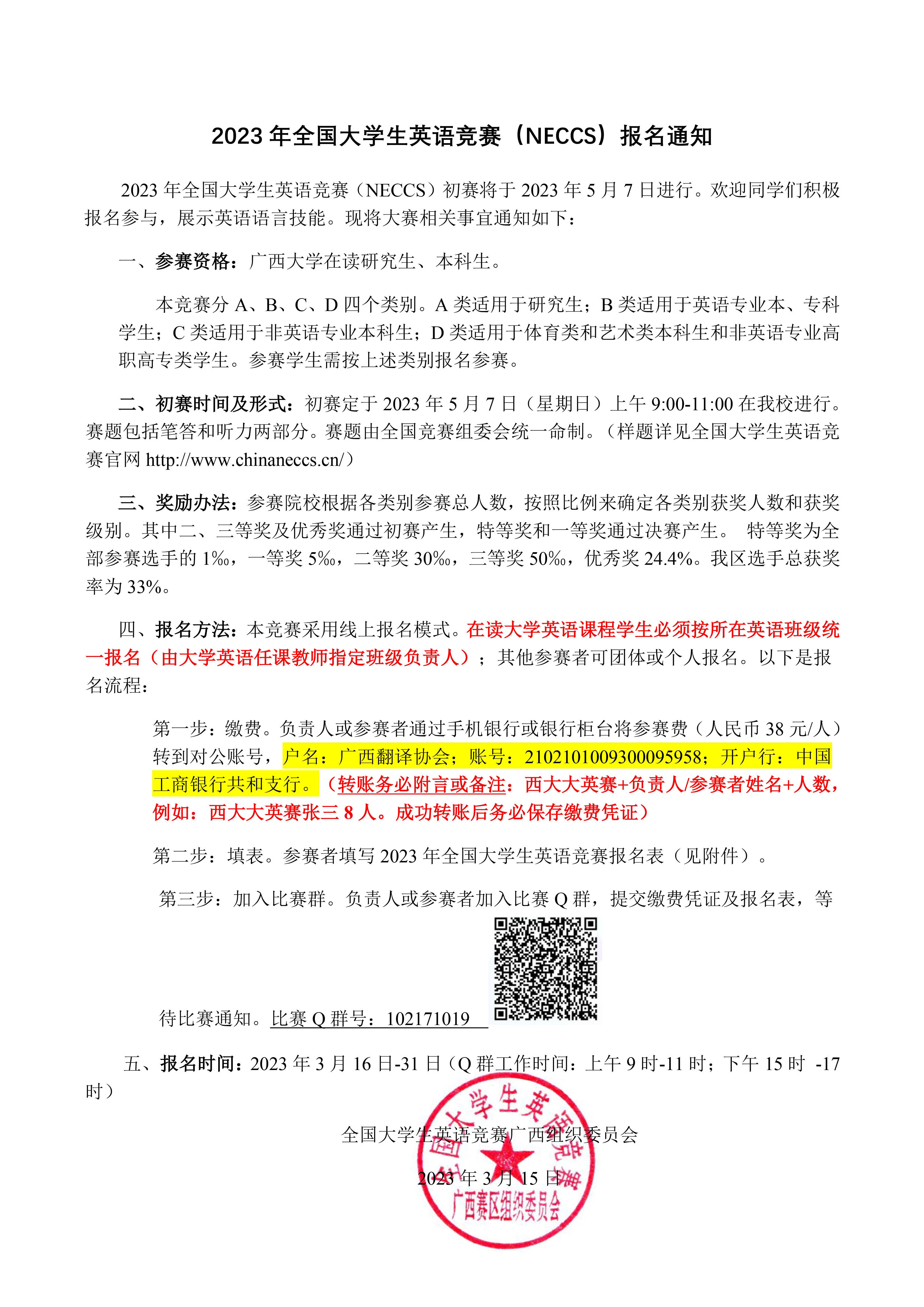 2023年全国大学生英语竞赛(NECCS)报名通知
