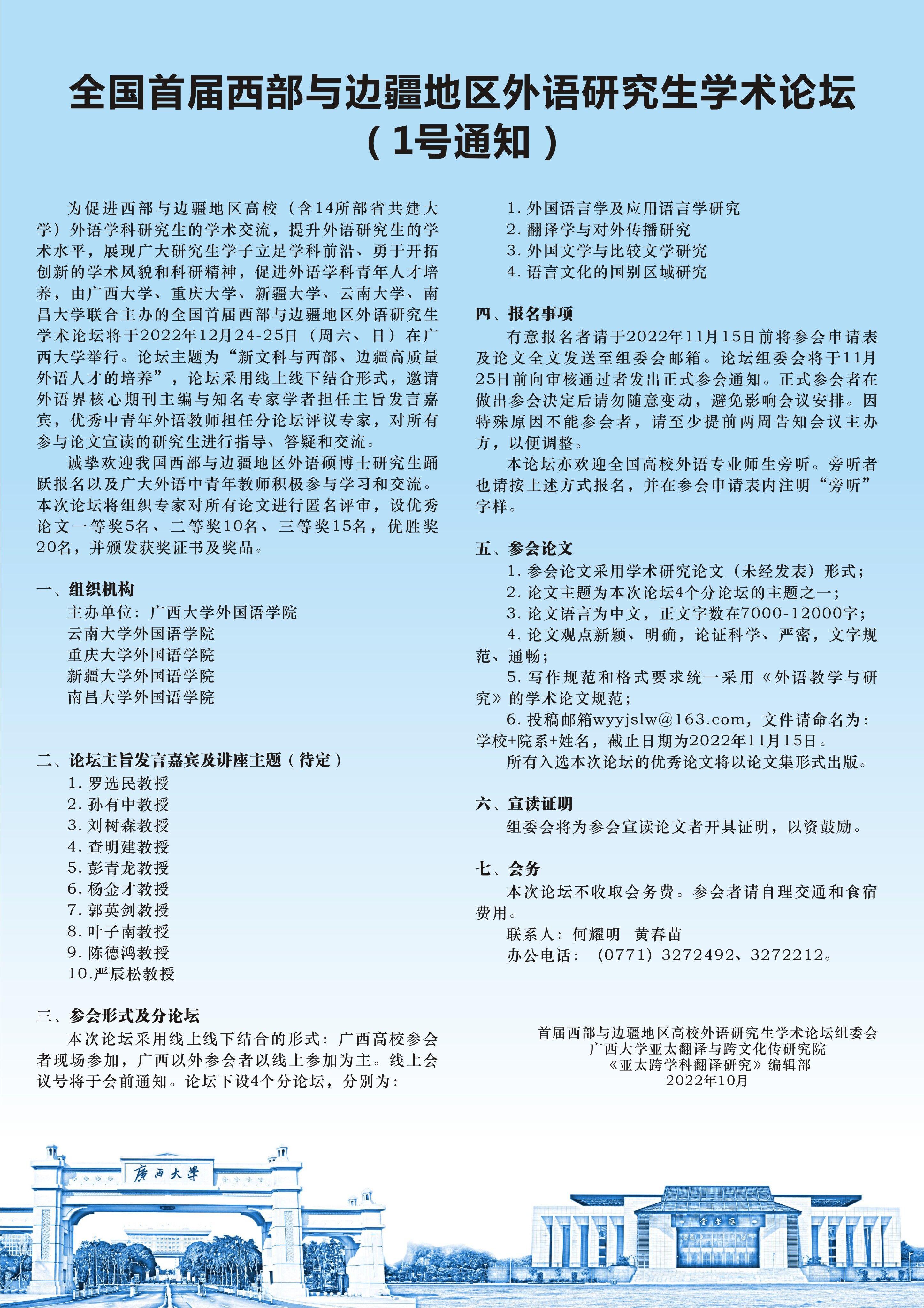 全国首届西部与边疆地区外语研究生学术论坛(1号通知)