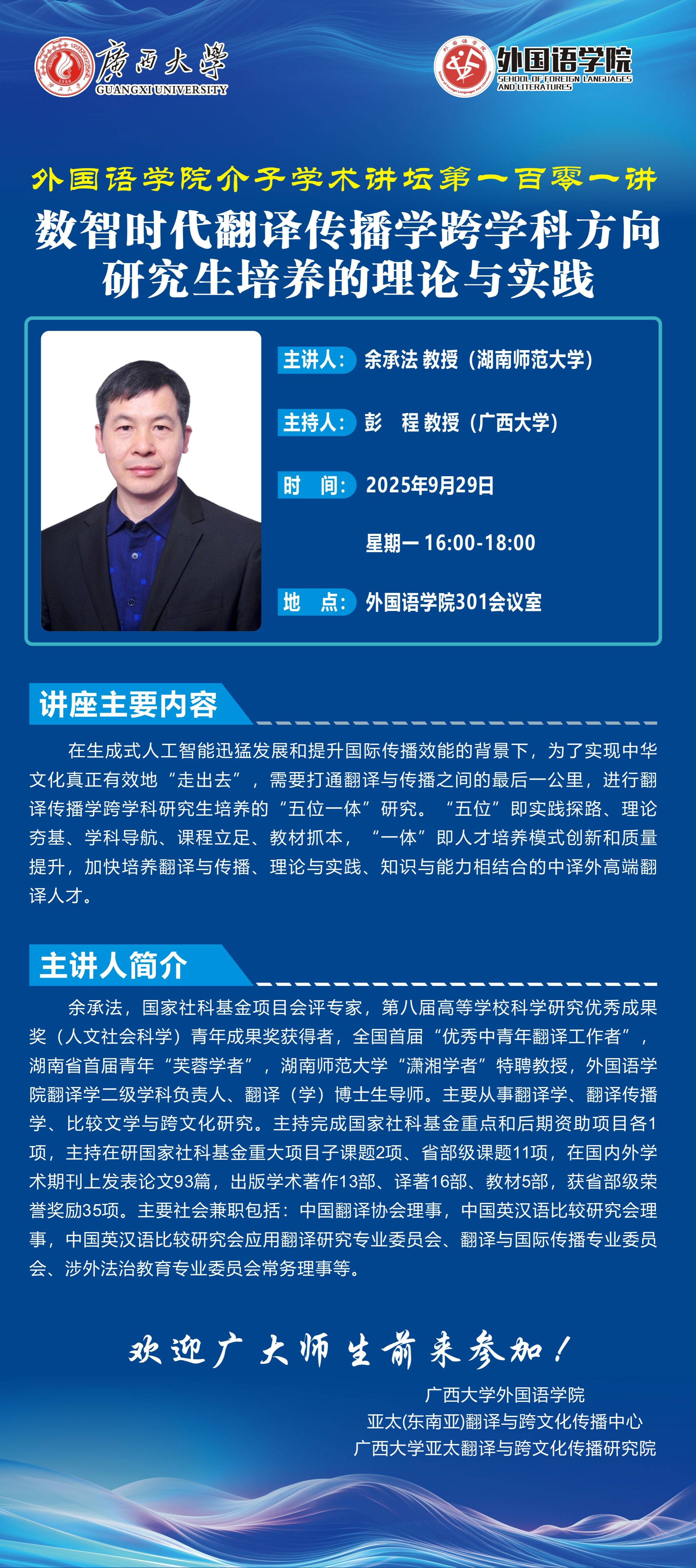 学术报告:数智时代翻译传播学跨学科方向研究生培养的理论与实践