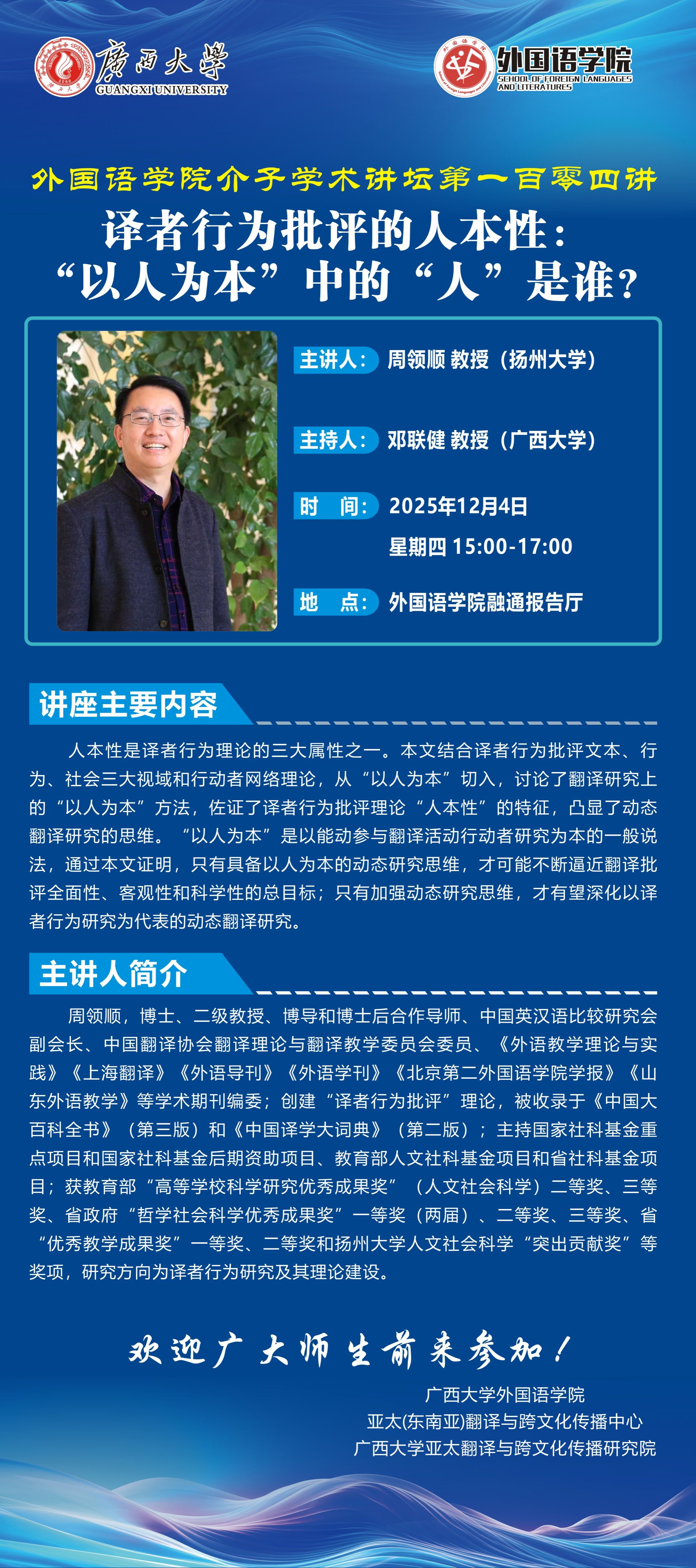 学术报告:译者行为批评的人本性:“以人为本”中的“人”是谁?