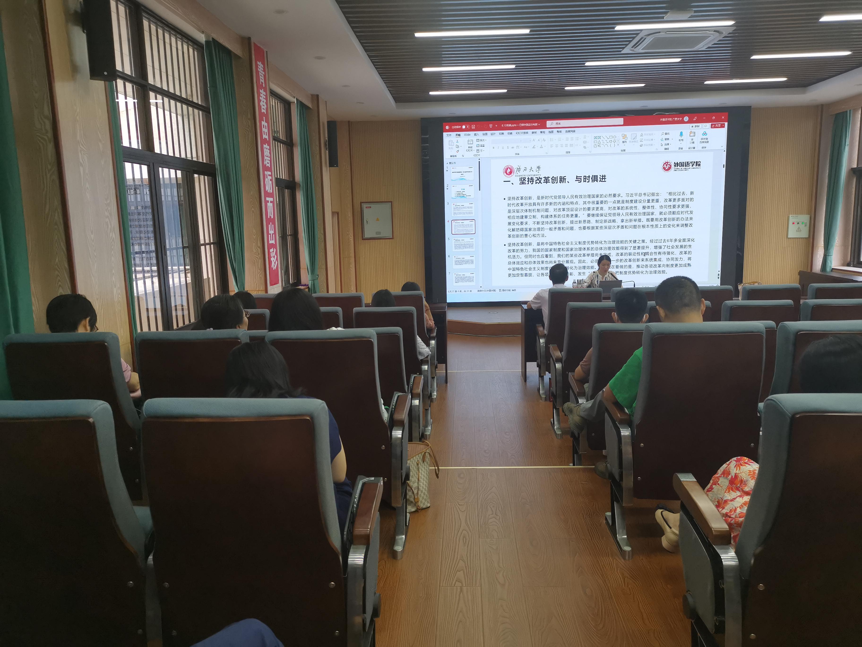 6月13日下午,ok138太阳集团古天乐党委在学院融通报告厅举办学习贯彻习近平新时代中国特色社会主义思想主题教育专题党课。学院党委书记黄开勇、副院长梁燕华、白佳芳在学习调研基础上讲专题党课,全体教师党员参加党课。