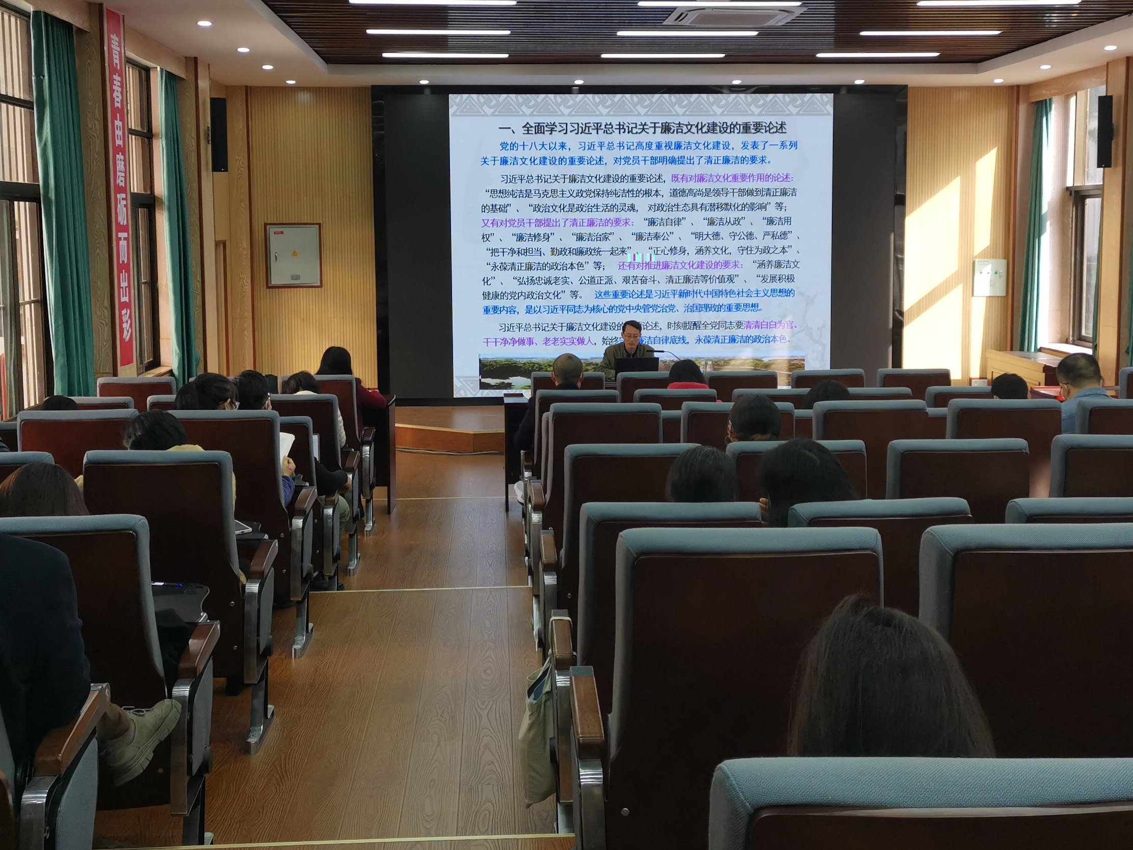 12月6日下午,ok138太阳集团古天乐党委在学院融通报告厅举办廉洁文化建设专题讲座。本次讲座由学院党委书记黄开勇主讲,全体教工党员参加讲座。