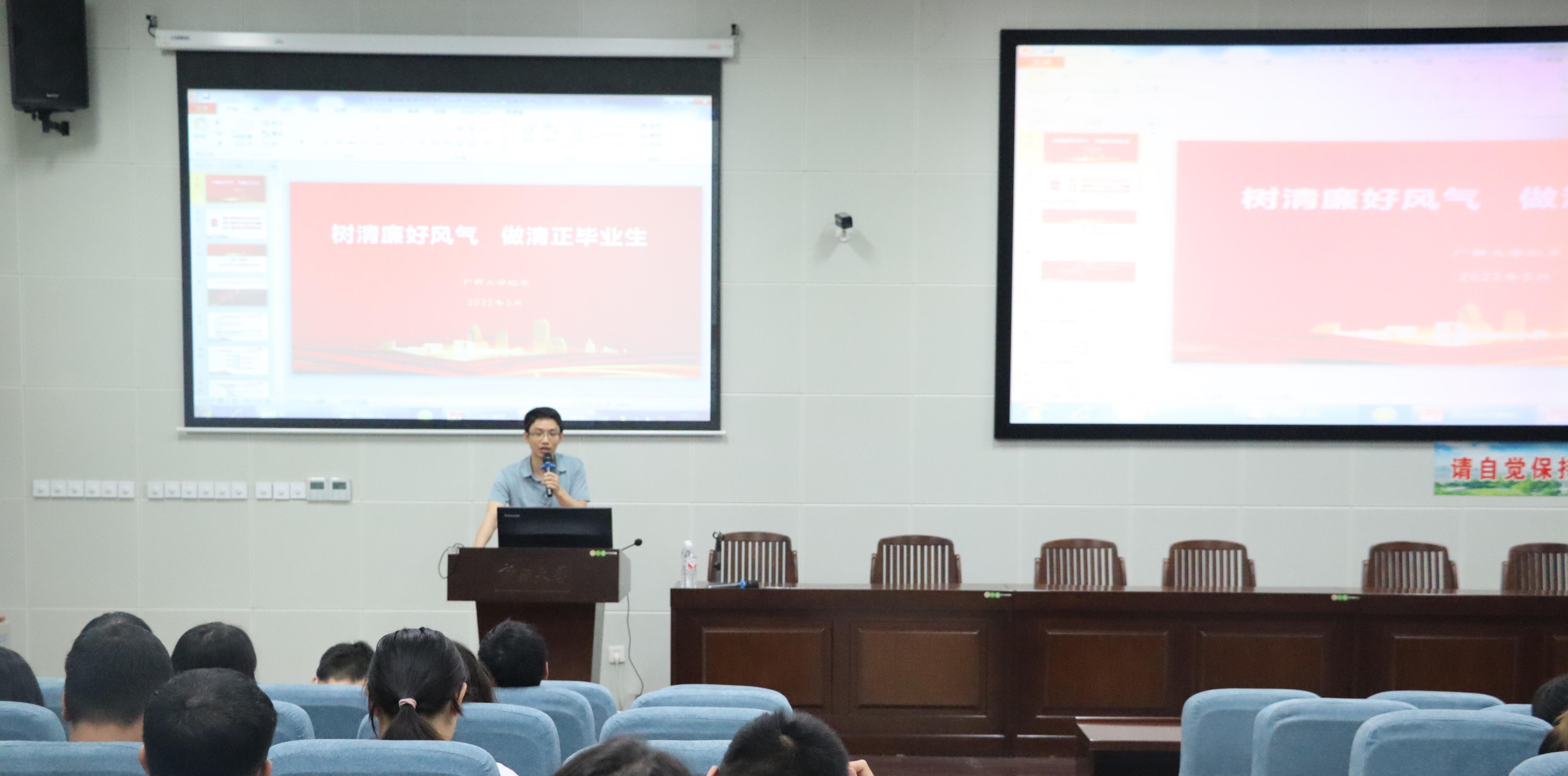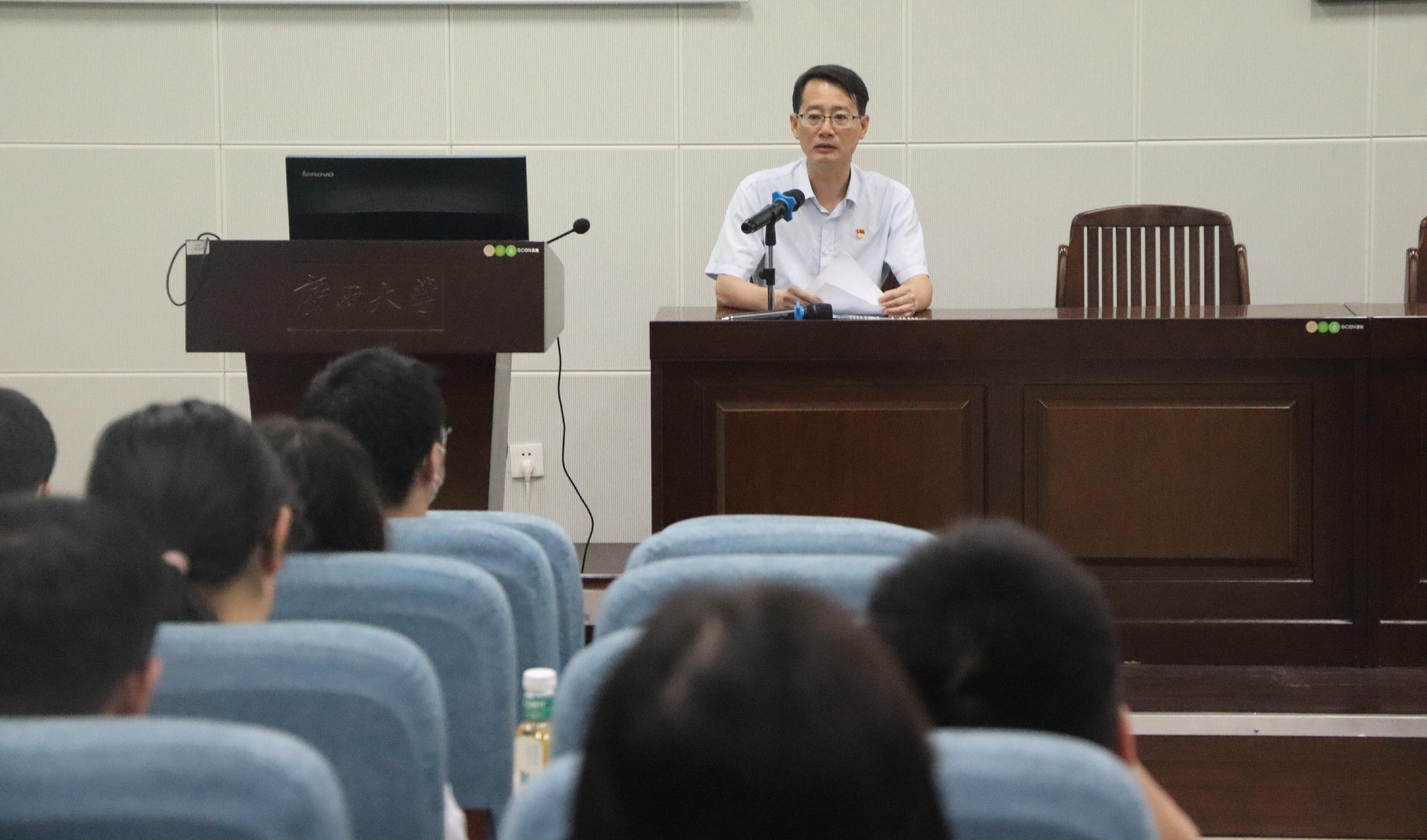 6月15日下午,ok138太阳集团古天乐在第六教学楼第二阶梯教室召开毕业生党员专题教育会。学院党委书记黄开勇、党委副书记肖克宁和专职组织员邓烨桦出席会议,全体毕业生参加会议。