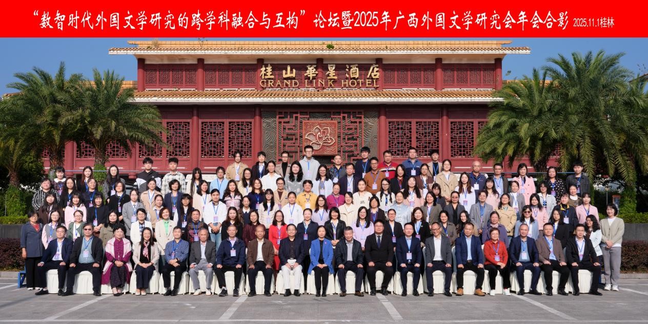 10月31日—11月2日,“数智时代外国文学研究的跨学科融合与互构”论坛暨2025年广西外国文学研究会年会成功在广西桂林市举办,吸引了全国各地高校近150位专家学者参会。基地主任邓联健教授、执行主任彭程教授与基地秘书陈瑶博士应邀参会,在学术研讨中展现出扎实的科研功底与创新活力,多项学术成果引发学界关注。