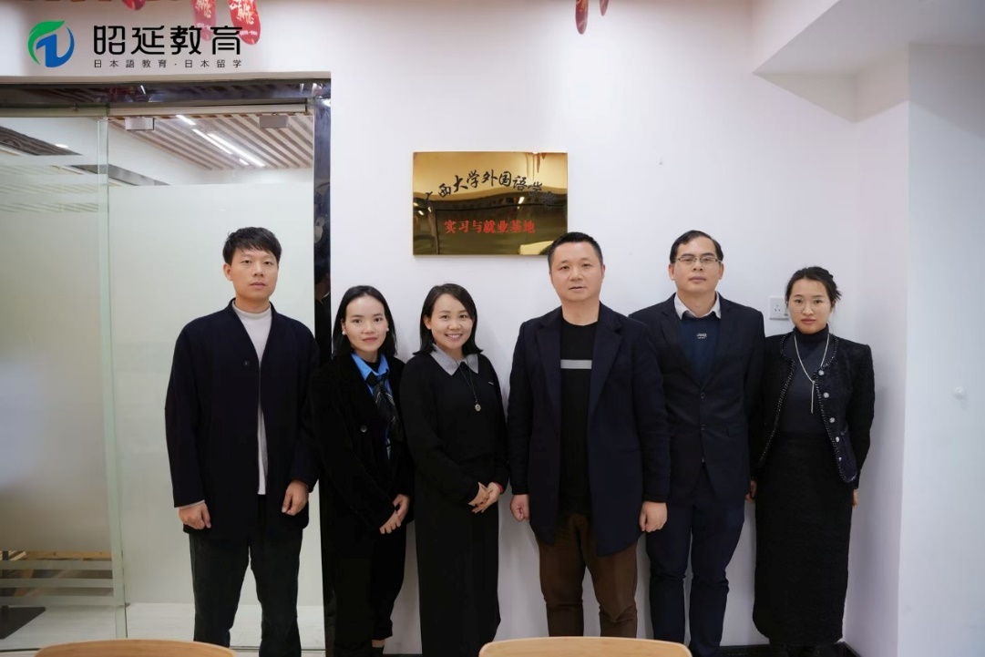 2025年12月24日下午,亚太(东南亚)翻译与跨文化传播基地执行主任彭程教授、成员黄成湘副教授、秘书陈瑶博士一行,专程前往广西昭延国际教育咨询有限公司,举行实习与就业基地挂牌仪式。这场跨越十余年的校友情谊与校企责任的双向奔赴,为西大日语专业人才培养注入了全新活力!